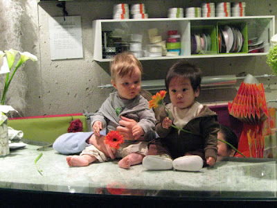 The installation pictured above was designed by me (in December of 2007) on the request of one of my favourite Set Decorators, in order to determine the signature style of the main character in a feature film who owned a "quirky"flower shop...although I did get the job, unfortunately a few weeks later the producers decided on "product placement" using a major wire service to supply their flowers....This was a first for both myself and for the set dec crew, and a big disappointment as well...We're all used to seeing Coca Cola, Mac, and other various symbols prominently displayed on TV and in Films....but Flowers? Yikes!!!!